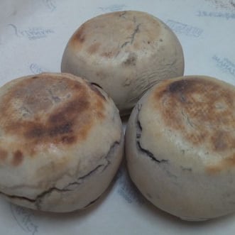 小麦粉をかために練った皮の中に、たっぷり具を入れて、いろりのほうろく鍋で表面を焼いたあと、灰の中でじっくり蒸しながら焼き上げました。